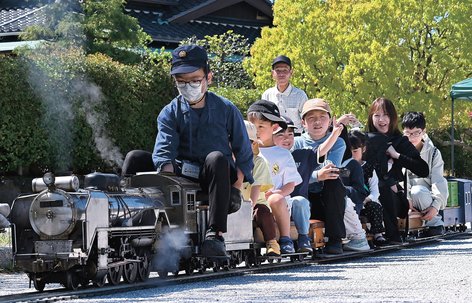 約5年間の保存修理工事を終えた国重要文化財・旧大社駅(出雲市大社町北荒木)の周辺で18日、リニューアルを記念した「大社駅はじまりフェスタ」があった。家族連れらがミニSLの乗車体験...