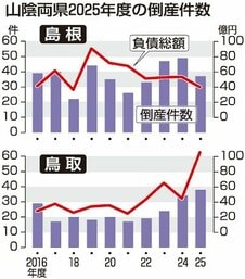25年度企業倒産、鳥取4件増38件 大型倒産で負債総額100億円超 島根は12件減37件