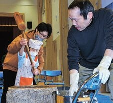 力合わせてぺったんこ 邑南で家族連れ餅つき大会