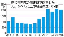 米軍機の低空飛行、騒音被害に歯止めかからず 島根西部で2026件 夜間の件数が過去最多 2025年調査