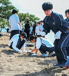 宍道湖岸をきれいに清掃 松江の中学生、環境への理解深める