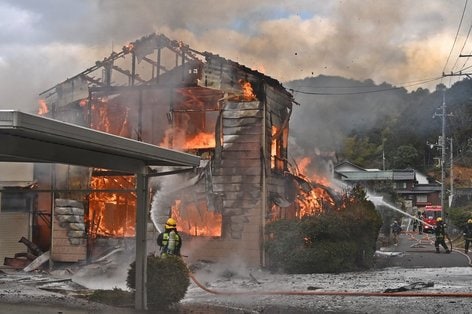 安来で民家火災 母屋と2階建て車庫が全焼 80代女性がやけど