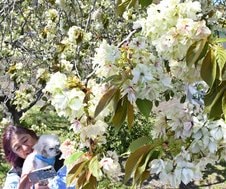 薄緑色の八重桜 「御衣黄」が見頃 雲南市の三刀屋川沿い