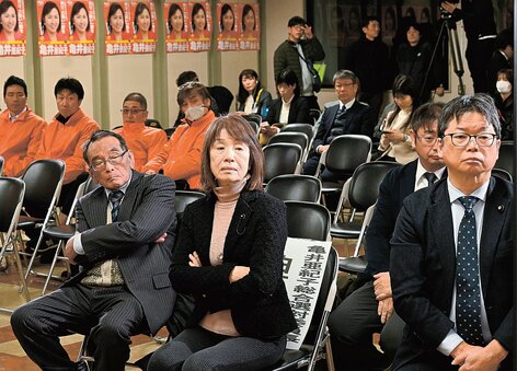 9日未明、松江市内の中道改革連合の亀井亜紀子氏の報告会場。島根1区で自民党候補に敗れ、3連勝を逃したのに続いて衝撃が走った。「えっ、うそでしょ」。比例代表での復活当選に望みをかけ...