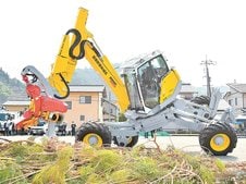 【動画】急勾配登坂し伐採、造材 日南町森林組合 高性能機お披露目