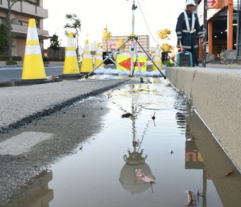 松江で市道下の下水道管が破損、路面に汚水 16日午後10時から片側通行...