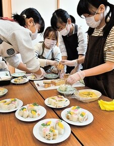 親子連れが押しずしとイチゴ大福作って味わう 飯南、ひな祭りイベント