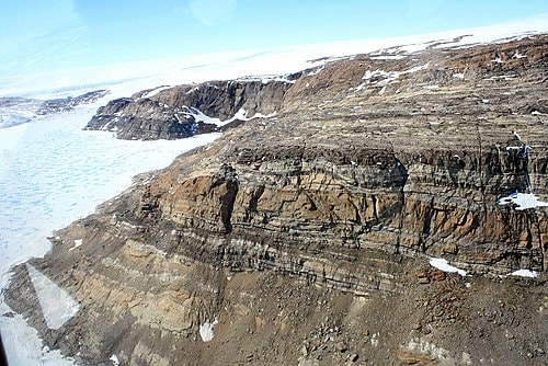 私(わたし)たちのような「石」を研究している隊員も、その短い夏にあわせて調査(ちょうさ)を行います。南極の石をしらべていると、【写真】のような、しま模様(もよう)の石がたくさんあります。これは「片麻岩(へんまがん)」という岩石で、もともとは砂(すな)や泥(どろ)だったものが、地下の深いところで別の石にかわったものです。この石を詳(くわ)しく調べると、今から約5億年前にできたことがわかりました。