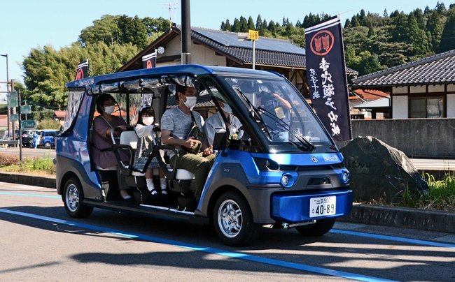 自動運転車による公共交通サービスが4日、島根県飯南町赤名地区で始まった。早速、地元住民ら16人が乗り、運転手の操作なしで動く車に驚いた。