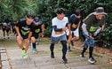 アジのフライ作りでは、三枚おろしに苦戦しながら内臓を取って身を切り離した。炊き込みご飯に岩のりをまぶしてぜいたくに食したほか、島の家庭の味として知られるアラメの炒(い)り煮、豚汁も楽しんだ。