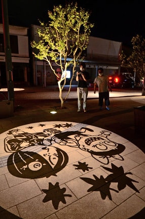 影絵は、市が2018年のロード新装に合わせて導入。今回は66のうち五つを変えた。