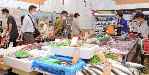 同店では開店前から約100人が行列。家族で訪れた同市荻杼町の会社員、小村太郎さん(40)は「周りにスーパーがなかったのでうれしい。生鮮売場には見たことのない魚がたくさんあった」と喜んだ。渕上耕一郎店長(46)は「旬や鮮度のある商品をお届けしたい」と話した。