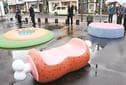 21日のお披露目式後、観光客が座ったり、親子連れが写真撮影に訪れたりして憩いの場となっていただけに、組合の金川大三副理事長(56)は落胆。「オブジェを傷つけることは園山さんや作品を傷つけることと同じ。今後は絶対にやめてほしい」と訴えた。