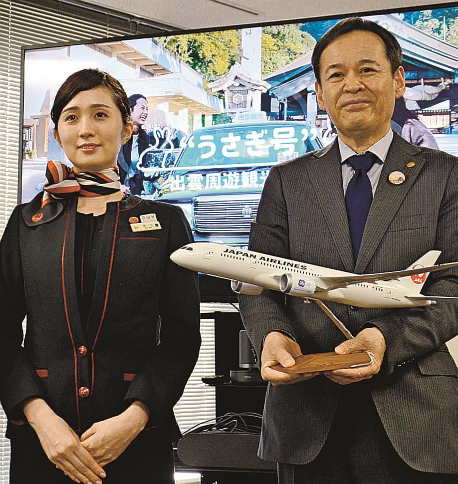 日本航空(JAL)の客室乗務員(CA)が5月から、出雲市内を周遊する観光タクシー「うさぎ号」に乗車し、観光ガイドとして活動する。市の依頼に同社が応えて実現。「おもてなしのプロ」の力を借り、新型コロナウイルス感染拡大で落ち込む観光需要の掘り起こしにつなげる。 (月森かな子)