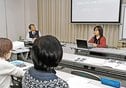 清水担当は見出し、リードと本文など新聞の基本構造、短時間で世の中の動きをつかむ読み方などを解説。日頃の新聞教室で生徒が取り組む新聞クイズや5W1Hゲームなど気軽に実践できる事例を伝授した。
