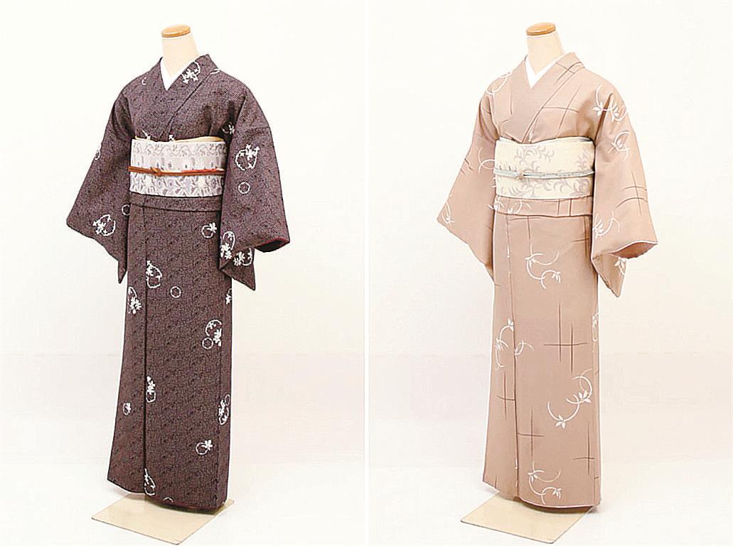 月3300円のコースでは、100種類以上の着物が選べる。ポリエステル素材のため着付けの練習や外出で着る人に便利だ。月6600円のコースには正絹の着物もある。
