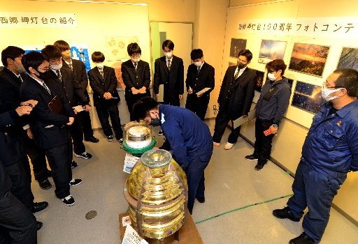 境港総合技術高校海洋科3年生12人も訪れ、河田拳翔さん(18)は「西郷岬灯台の歴史、景観は魅了的だ」と話した。
