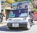 時速20キロ以内で走る4人乗りと7人乗りの電動カート計2台に、行政、観光、交通関係者ら約20人が分乗。運転手の案内で大山ナショナルパークセンターを発着点に、大山寺参道、西日本最大級のスキー場・だいせんホワイトリゾート近くの豪円山のろし台を約20分かけて巡った。
