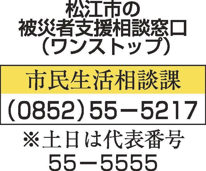 支援制度は各課にまたがるため、市民生活相談課にワンストップの相談窓口が設置されている。電話番号は、0852(55)5217。平日のみの対応となっている。 (片山大輔)
