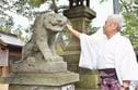 石像の台座には「秋本岩蔵」という人物が大正11(1922)年に寄贈したとある。秋本氏は氏子で、朝鮮半島に在住したという。朝鮮では古来、虎は神聖な動物と考えられ、虎に関する民話や工芸品が多く残る。岡村宮司は「故郷の神社のため、神聖な虎をかたどったこま犬の制作を考え、奉納した可能性が高い」と推測する。