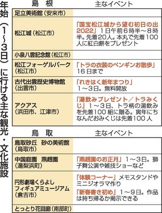 山陰両県の主な観光・文化施設は年始も営業しており、さまざまなイベントを企画している。