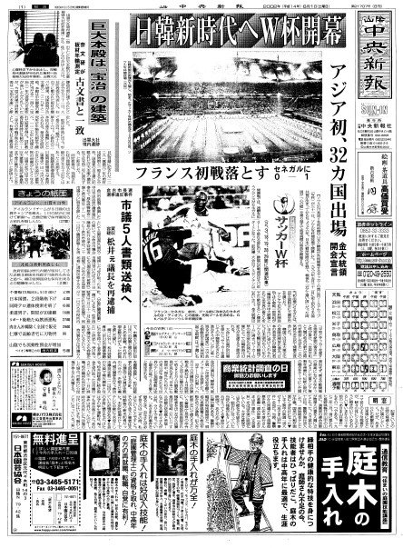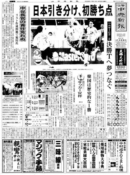 6月5日付 W杯で日本が躍進。4日の初戦で初の勝ち点を挙げ、その後グループリーグを突破し、決勝トーナメント16強に