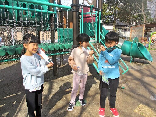 22日午前、松江市北堀町の嵩見保育所では短い晴れ間を見計らい、マスクを気にしないで済む園庭での運動時間を設けた。大谷いづみ所長は「子どもがマスクを着ける状況は保育者として常態化させたくない」と感染拡大の収束を願った。