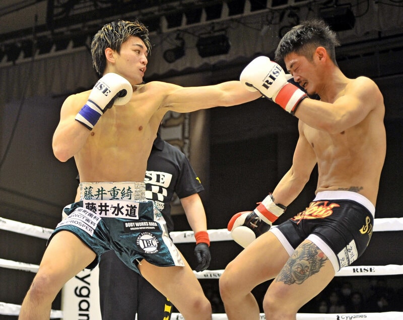 人気キックボクサー・那須川天心さんが所属する立ち技格闘技「RISE(ライズ)」で、脱サラして昨年1月にプロデビューした出雲高校出身の藤井重綺さん(26)が注目株になっている。ボクシングで培ったパンチを武器に新人王を獲得し、2月23日の試合も見事勝利。地元・出雲で格闘技ジムを開く夢を描き、トップ選手が集うリングで技を磨き続ける。