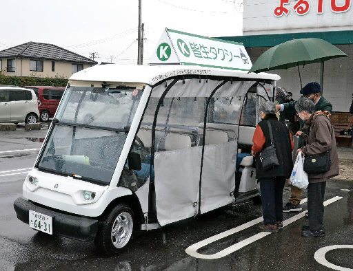 試験運行を前にした試乗で1日、軽費老人ホーム福原荘(米子市皆生温泉4丁目)から、スーパー・まるごう皆生店(同市皆生温泉2丁目)まで片道1・6キロを往復した野村芙貴子さん(81)は「乗り心地はいい。天気が悪い日はタクシーで外出していたので、安ければ助かる」と話した。