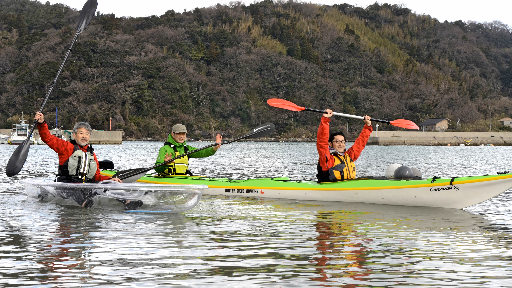 6日には、新たに購入した3艇の進水式があり、透明なカヤックもお目見え。かたゑ庵のホームページからツアーの予約ができる。