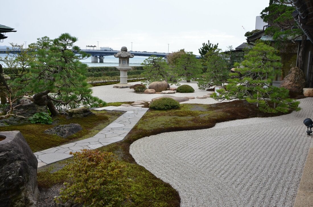 創業130年以上、宍道湖畔に建つ旅館の皆美館(松江市末次本町)の枯山水庭園は、今回4位。県内の庭園では足立美術館以外で唯一、19年連続ランクインし、18~20年は3年連続で3位という好成績を収めた。