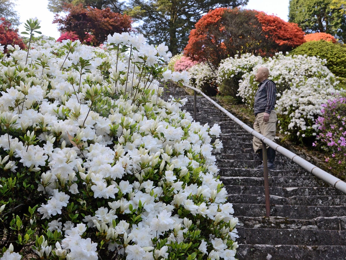 標高約300メートルにある高野寺でツツジを植え始めたのは約70年前。さまざまな種類の約1千本が傾斜地一面を埋めるようにして広がる。