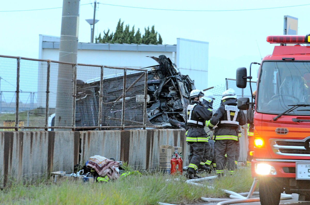 1日午前4時20分ごろ、境港市昭和町の臨港道路で、松江市の無職の男性(64)の軽自動車が対向車線を越え、縁石に乗り上げた弾みで近くのコンクリートの壁とフェンスを破って止まった。男性は全身を強く打って死亡した。