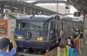出雲市駅では、JR西元職員ら約20人が出迎え、「美肌県しまね」にちなんだ美容品を配った。大田市の大屋神楽社中による石見神楽の披露もあり、家族3人で乗った大阪府摂津市の主婦、中野公子さん(69)は「各駅でお出迎えやプレゼントがあり、幸せだった」と話した。