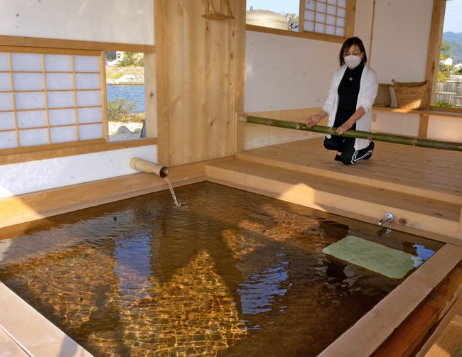 鳥取県湯梨浜町の老舗温泉旅館「湖泉閣養生館」が、貸切露天風呂を1884(明治17)年の創業当時の姿に改装した。倉吉市名誉市民の日本画家、菅楯彦(1878~1963年)が訪れ、描いた絵を基に浴槽や障子張りの窓、脱衣場を忠実に再現した。山枡美鶴社長(57)は「コロナ禍でじっとしていては先がない。リニューアルは挑戦」と話す。