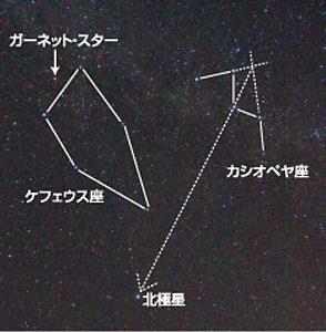 ケフェウスはカシオペヤの夫です。王妃様の夫ですから、王様ですね。でも、明るい星がないので、王妃様に比(くら)べ目立ちません。写真を参考に、月の出ていない夜に探してみてください。