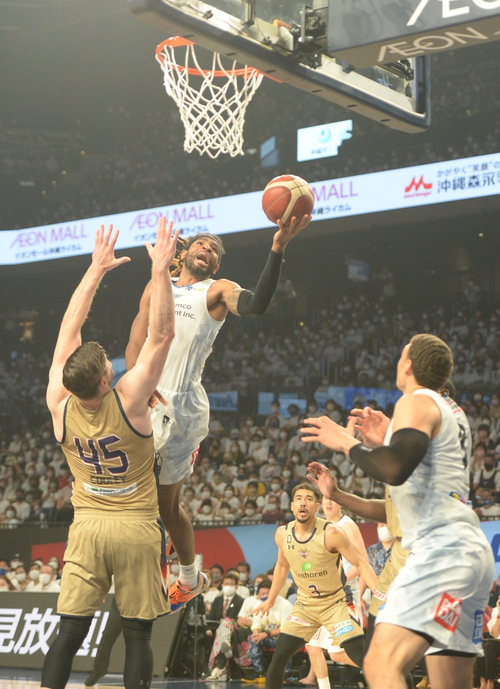 島根スサノオマジックが21日、チャンピオンシップ(CS)準決勝の第1戦で琉球ゴールデンキングスと対戦した。手に汗握る攻防を計23枚の写真で振り返る。