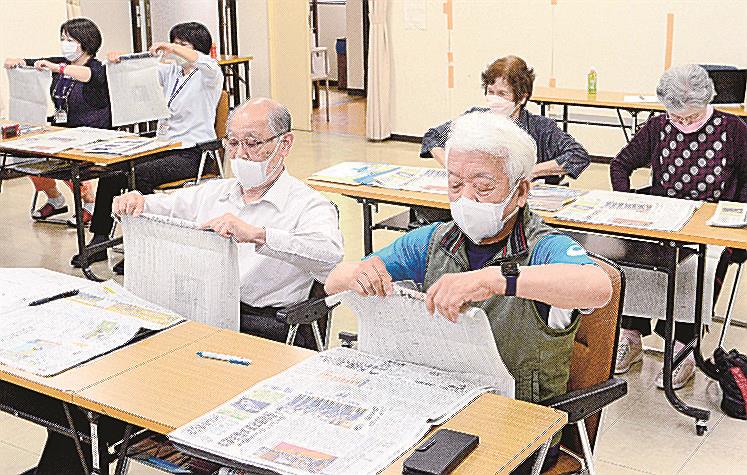 参加者は記事の一段落に「木偏」の漢字が何個あるか探したり、新聞紙をきれいに素早く巻き上げたりして脳の活性化を図る活動を体験。温泉津町温泉津の主婦大迫富子さん(84)は「楽しく、勉強になった。1面からしっかり読みたい」と話した。