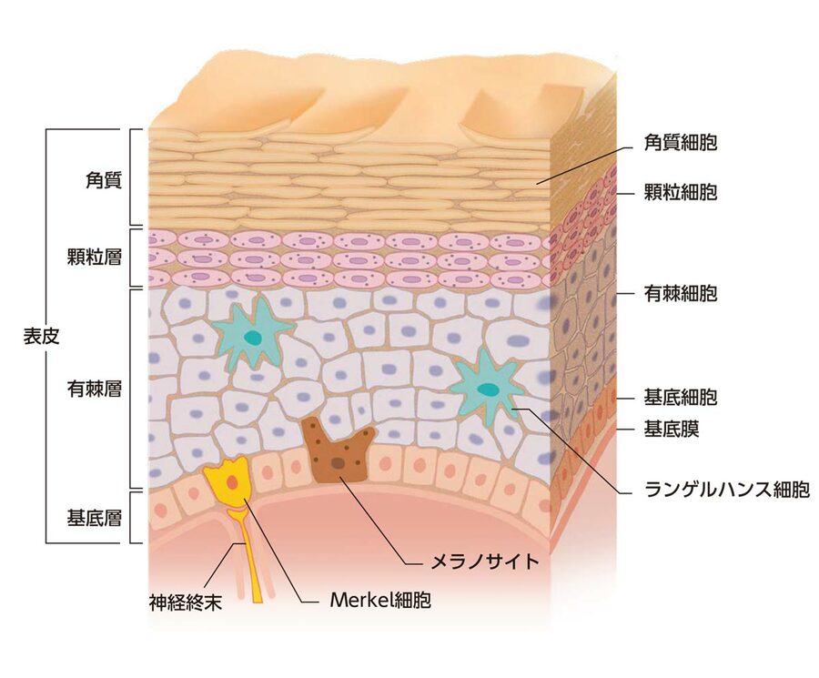 紫外線を浴びると、皮膚のすぐ下の表皮と呼ばれる部分にある細胞や組織にさまざまな変化が起こるという。