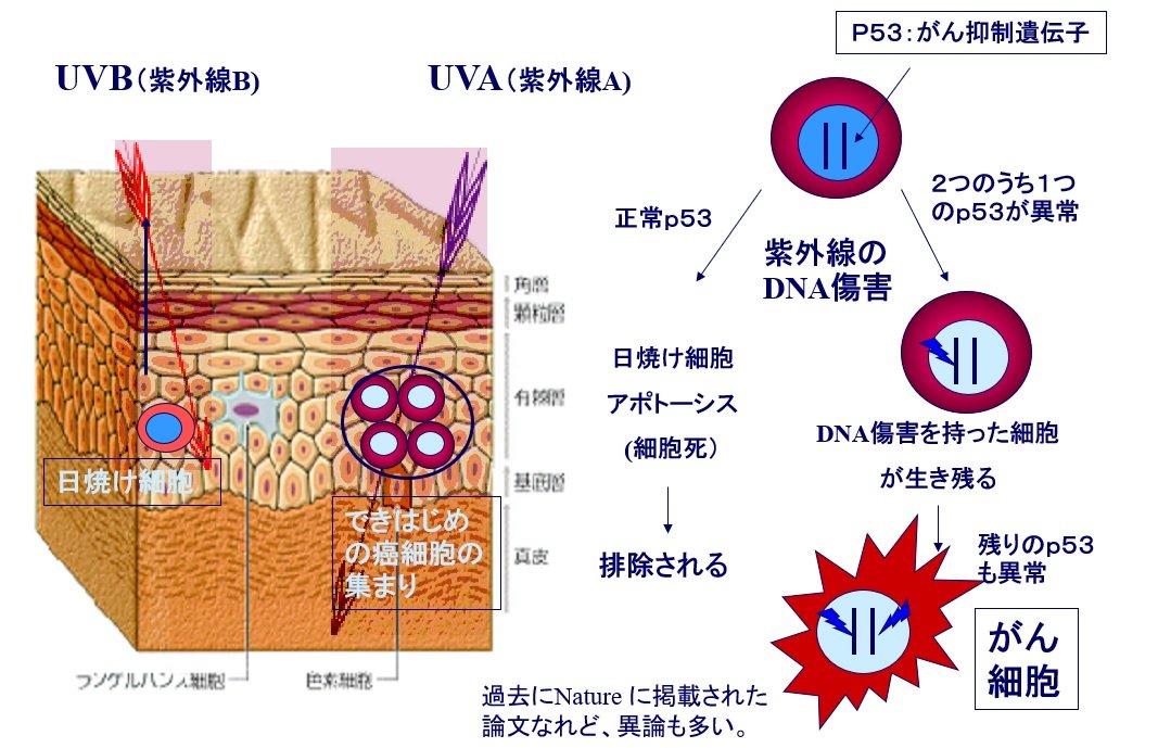 ▼紫外線で傷ついた細胞が増殖、がんに