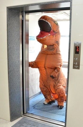 なるほど、そんな広報活動をしていたくらいなら着ぐるみで会社に入ってくるのは朝飯前だろう。川本さんは現地で特に警備員などに止められることもなく「子どもによく喜ばれた。着ぐるみ姿で弁当を買ったら子どもに『恐竜も弁当とか買うんだ!』と言われて楽しかった」と笑顔を見せる。
