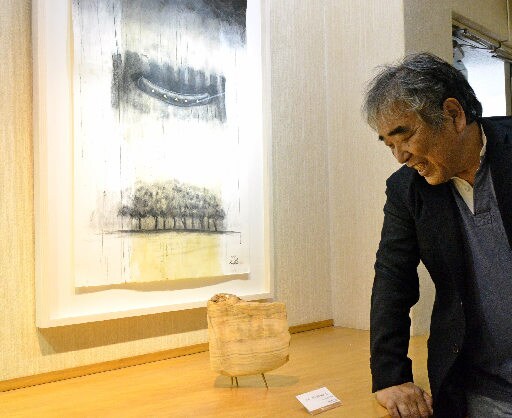 3月に東京造形大教授を退官した井田さんは地元・日吉津に戻った。退官後、県内での個展は初めて。米国ニューメキシコ州の岩山「エル・モロ」をオニキスで表現した作品やインド砂岩で作った日時計、教え子や同僚の教員を描いたデッサンが並ぶ。