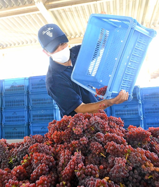 今季のデラウェアは糖度20~23度と上々で、8月までに県内産60トンを集荷して720ミリリットル換算で6万本分を醸造する。