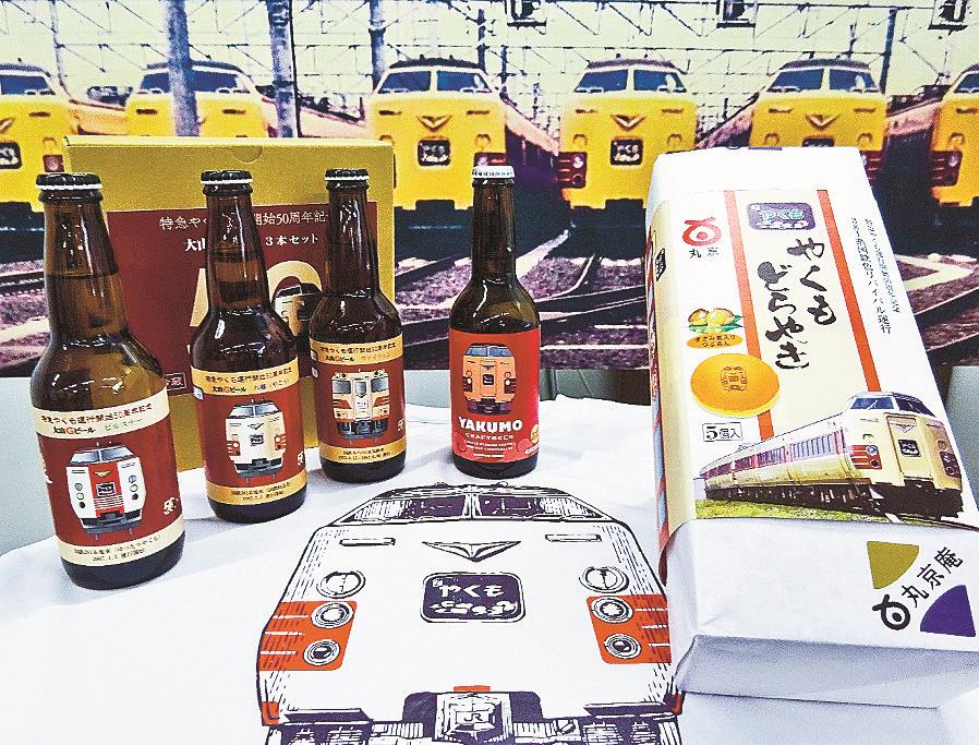 丸京製菓(米子市旗ケ崎)は、氷温熟成製法で製造し、和菓子職人が手作業で国鉄色やくもの焼き印を入れたどら焼き(5個入り、1200円)を開発。今井印刷(米子市富益町)はTシャツ(価格未定)などのグッズをそろえた。