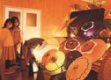 郷土芸能の授業を使って、生徒11人が取り組む。7~11月の計10回の授業で、竹や因州和紙などを使って直径90センチ、長さ150センチの「白張り踊り傘」を仕上げる。