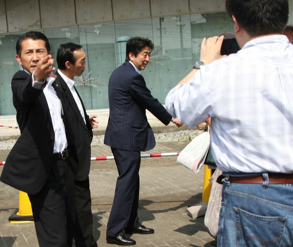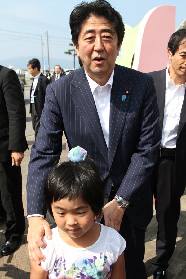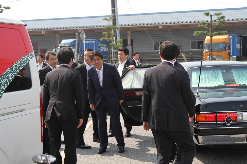 安倍氏は私が首から提げた一眼レフカメラを見つけるや娘の肩に手をやり、引き寄せて記念写真を促した。5、6枚シャッターを切ると、他の住民と握手をして先回りしたセンチュリーに乗って去って行った。