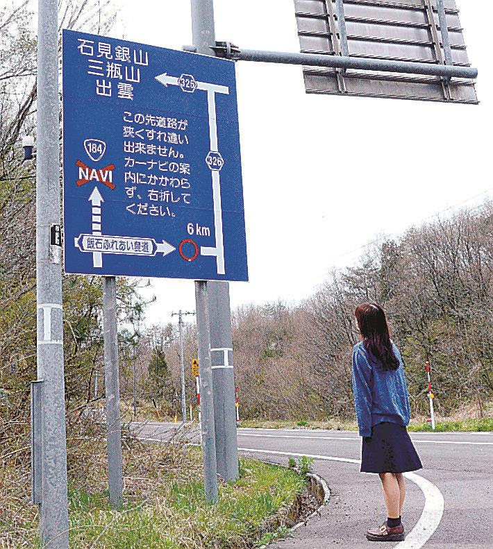 「この先道路が狭くすれ違いできません。カーナビの案内にかかわらず、右折してください」―。島根県飯南町下来島で国道184号と飯石ふれあい農道の交差点に一風変わった案内標識がある。知らない道を走るのに役立つカーナビが、必ずしも「正解」に導いてくれるとは限らない。標識の先にはどんな道が続くのか。実際に車を走らせた。 (清山遼太)