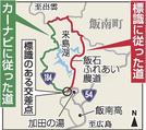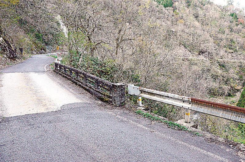 二つのルートを走り比べた。まずは、国道。走り始めは、所々狭い箇所があるくらいで、走りにくい道とは感じない。ところが、7キロほど進むと、道幅は徐々に狭くなり、木々に囲まれ、昼間なのに薄暗い。急カーブが連続し、見通しも悪い。最も狭いところだと道幅が4・1メートルしかなく、すれ違いが困難な箇所も多数ある。合流地点まで所要時間は16分だった。