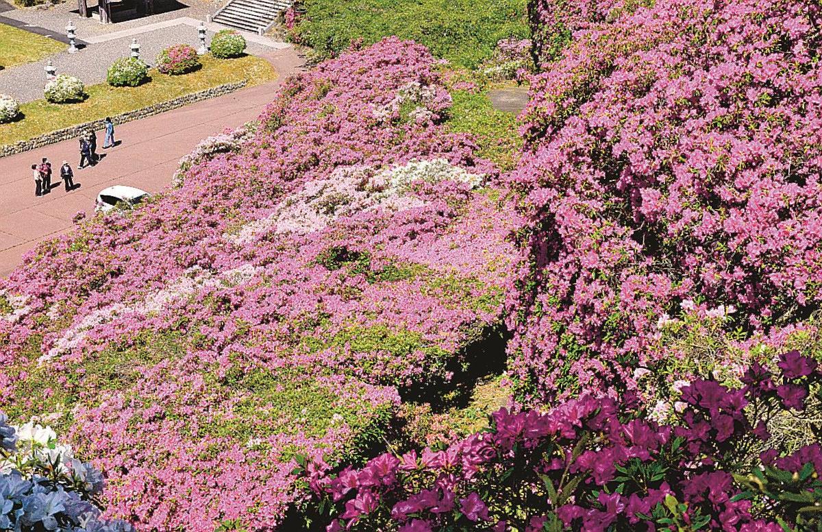 ツツジの名所として知られる同公園には、平戸ツツジや久留米ツツジなど約5万本が植えられている。同課によると、例年より1週間ほど開花が早いという。
