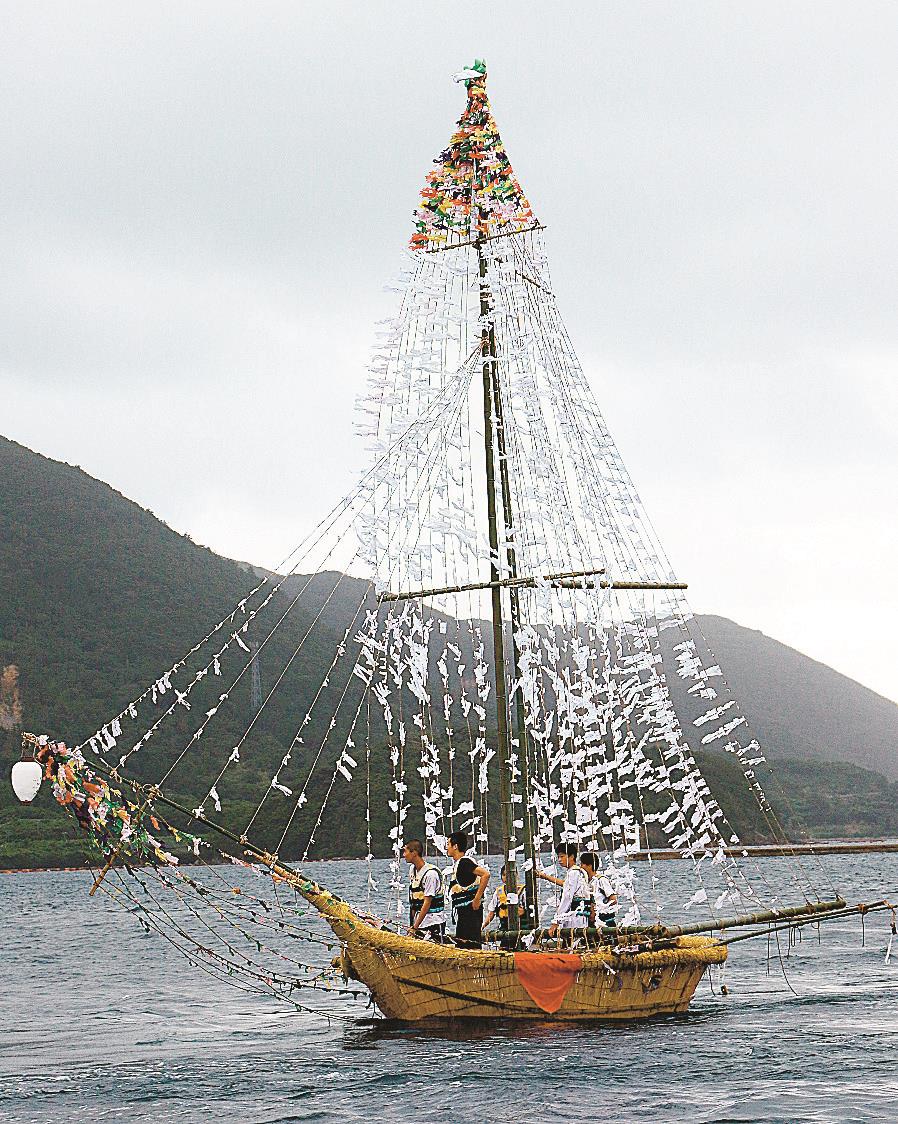 天草秀雄区長(74)は「強風が予想されたが、なんとかご先祖を送れて一安心した」と話した。17日朝には同町美田地区でもシャーラ船が送られる。 (鎌田剛)